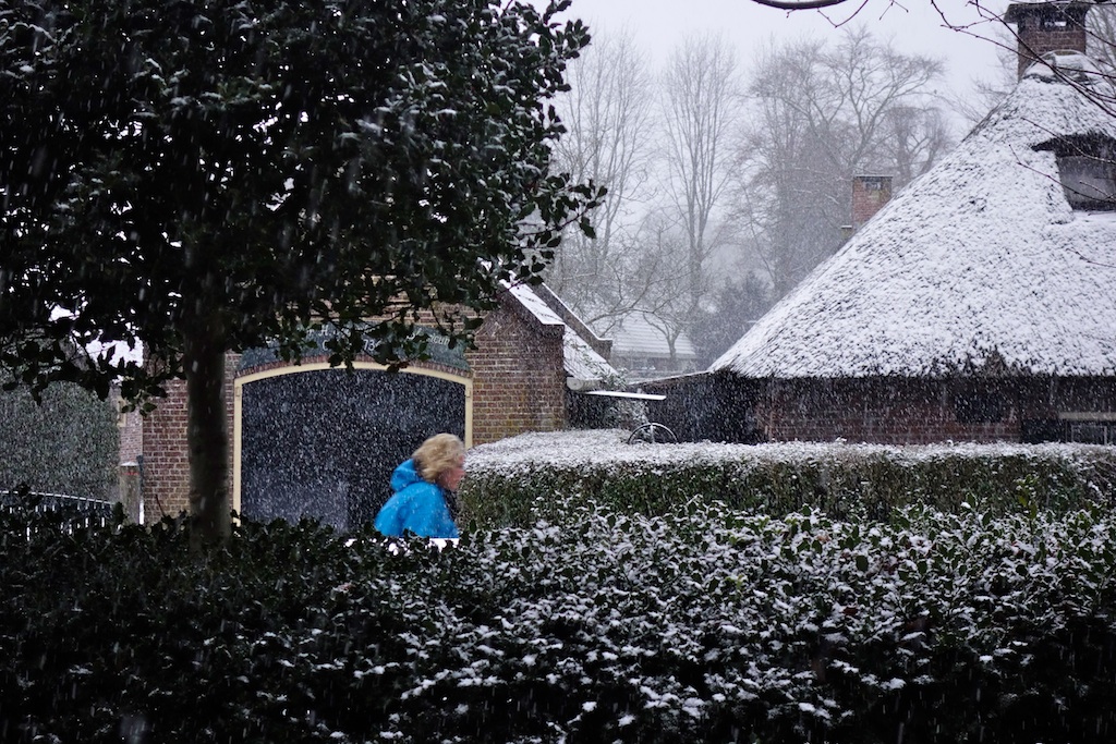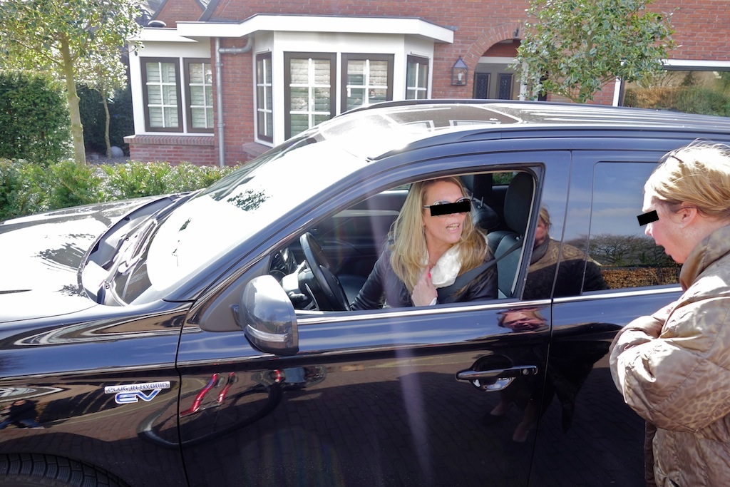 De autodame en de aanwonende dame wisselen nog wat ha(r)telijkheden uit van de soort ‘kijk ’s in de spiegel’.