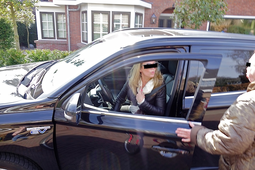 De autodame komt even later weer langszij.