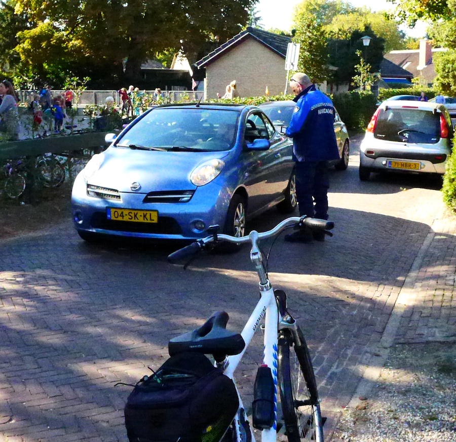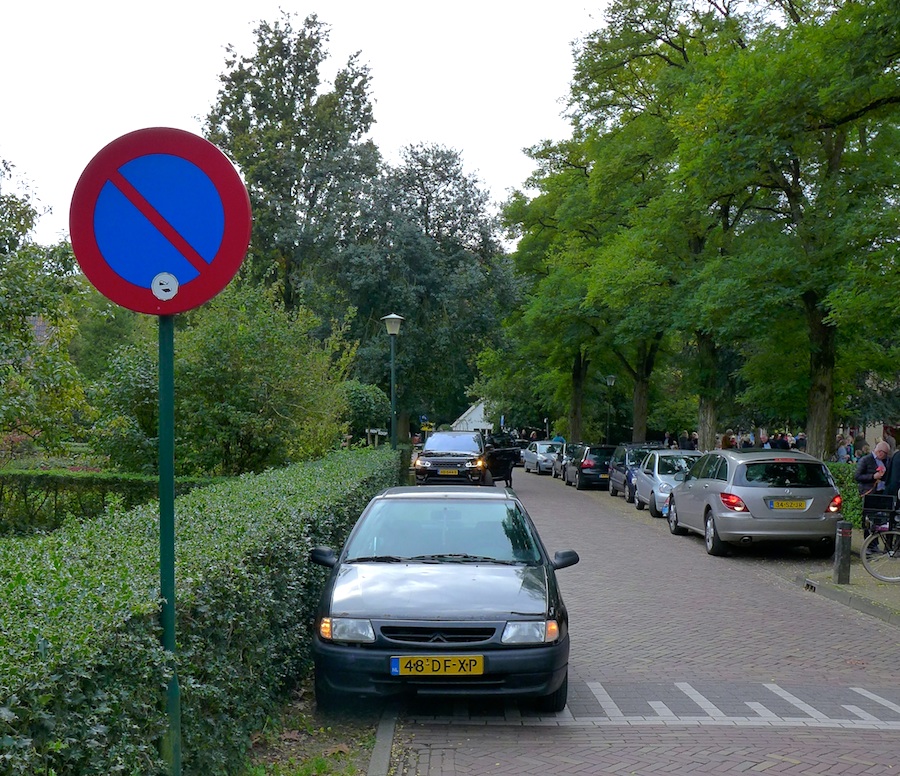 De bestuurder parkeert zijn auto (volledig legaal) drie plaatsen naar rechts. Hij gaat winkel B in en vraagt daar waar (de 10 meter verder gevestigde) winkel D is. Hij krijgt antwoord, zet zijn auto zonder de benodigde kaart op de invalideplek (en de stoep) en gaat naar winkel D. Tien minuten later komt hij weer bij zijn auto, waar dan een bon van € 370 op zit …