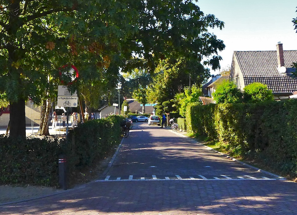 Verkeersbord dat moet bijdragen aan veiligheid schoolkinderen is door overhangend blad onvoldoende zichtbaar.
