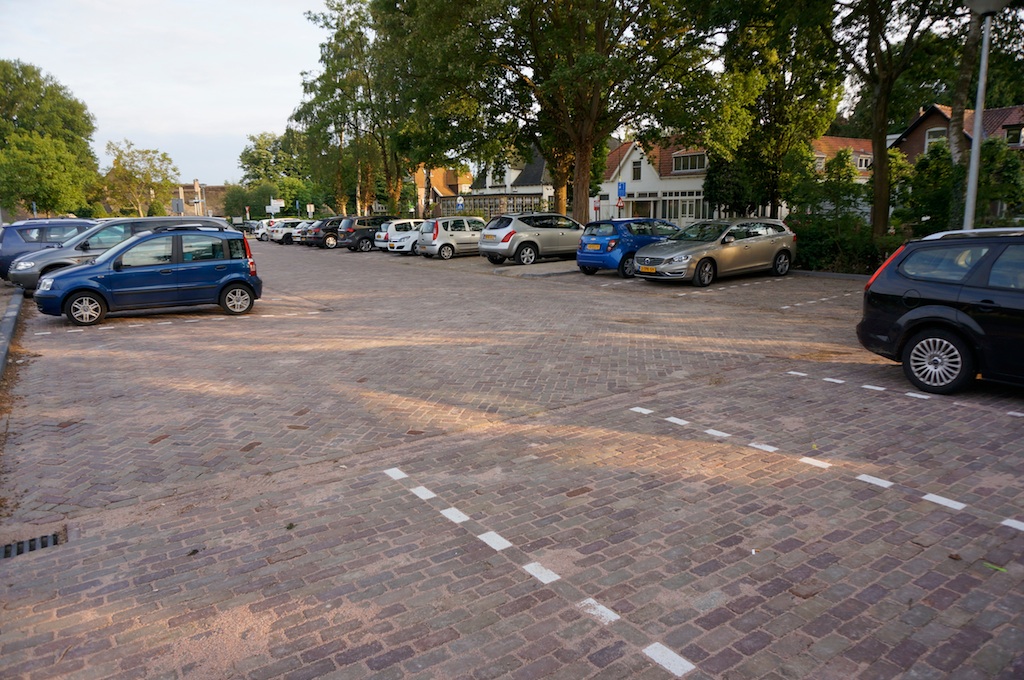 En dat was zo. Dat is zo. Fris en strak liggen nu de nieuwe klinkers ook in voorheen een stukje weiland. Goed zichtbaar, heel goed zichtbaar zelfs. Want … om kwart over acht waren er 13 plaatsen onbezet. Bij de snackbar waren twee plaatsen onbezet. Aan het Binnendoor/Achterom waren er twee onbezet. Aan het Achterom (achter de kerk) waren er drie onbezet. En het Oranjeweitje? Dat leek wel een park, met aan de rand een enkele verdwaalde automobiel.