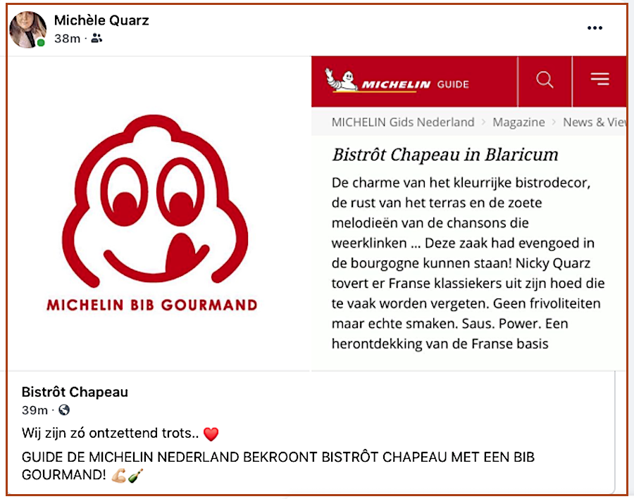 Bib Gourmand voor Chapeau