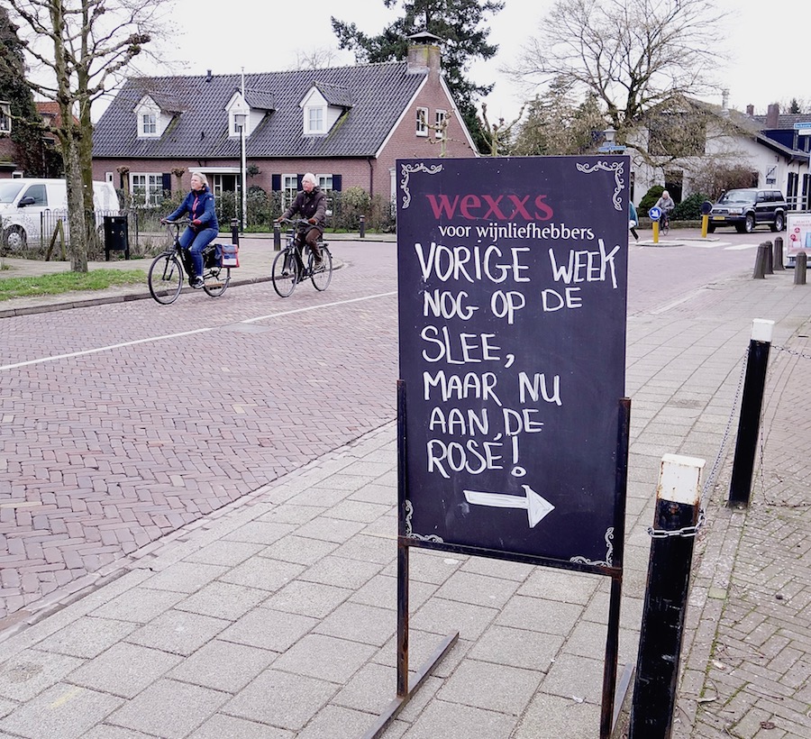 ‘Haha, we komen helemaal uit het zuiden. Hebben hier een schilderij afgeleverd. En nu lunchen, met een lekker broodje van Blushing. Ja, jammer dat de terrassen dicht zijn, maar zo is het ook lekker, hoor!’